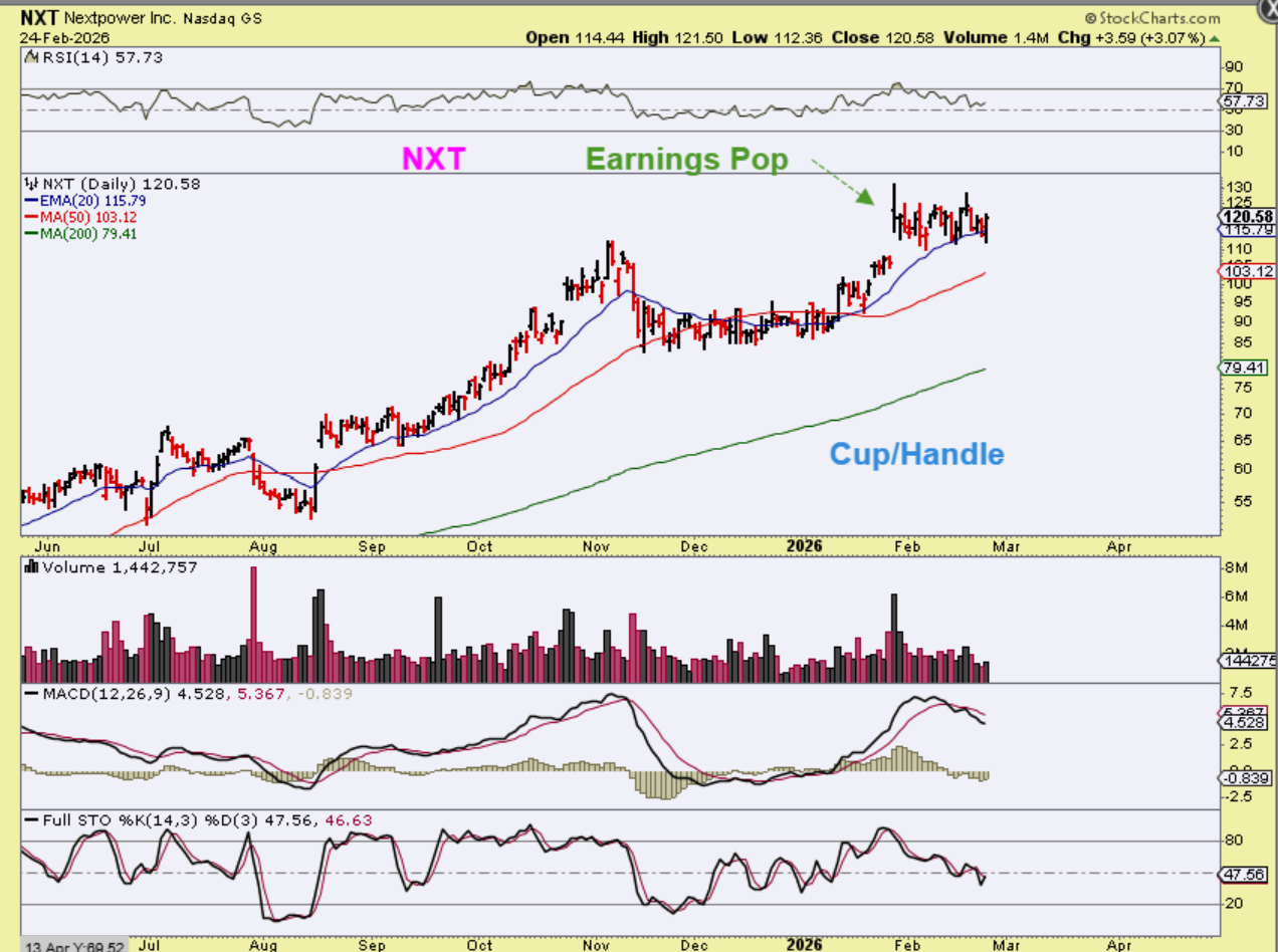 NXT is an Energy stock that is choppy, but it looks bullishly choppy, as though it is forming a cup with a high handle. That was a nice run August to November, with a dip to the 50sma when we had the November ICL sell off, so it should be able to run again when it’s ready.