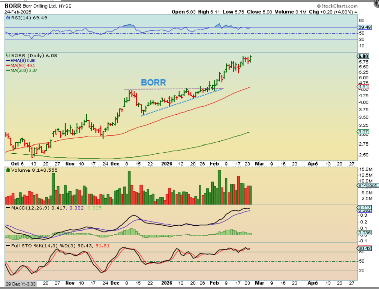 Oil stocks like BORR, VET, VLO, NOG, WTI, etc  continue to chop higher since becoming a ‘buy weeks ago.