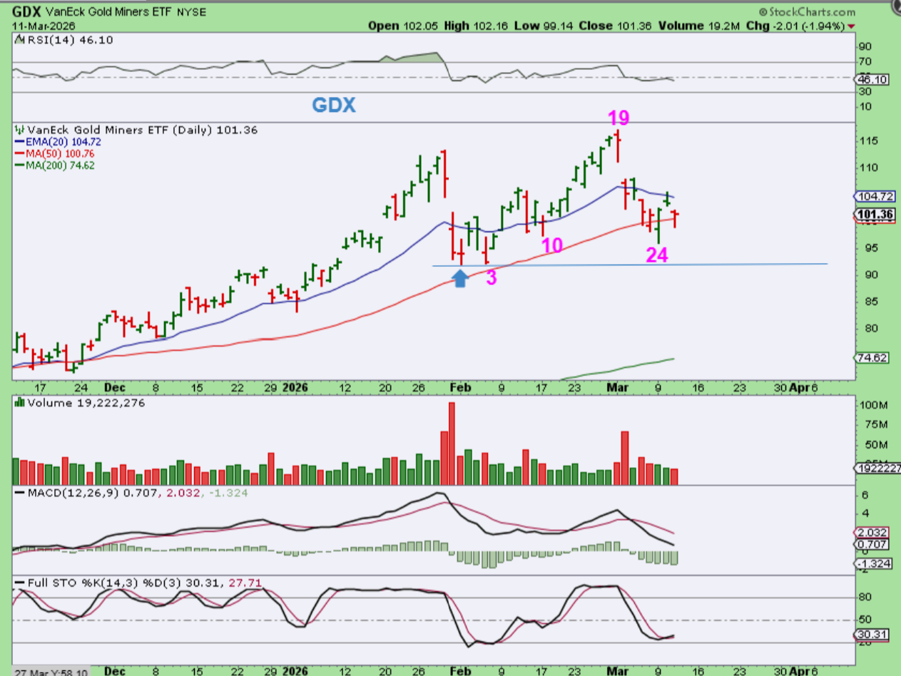 GDX already gave us a low on day 24 with that reversal at the 50sma. GDX has been following Gold, but if Gold and Silver both dip quickly to a dcl overnight or premarket with the jobless claims, and then recover after the opening bell, they may make new lows but GDX may not break its’ lows, since it has a low on day 24 it may resist breaking that low.
