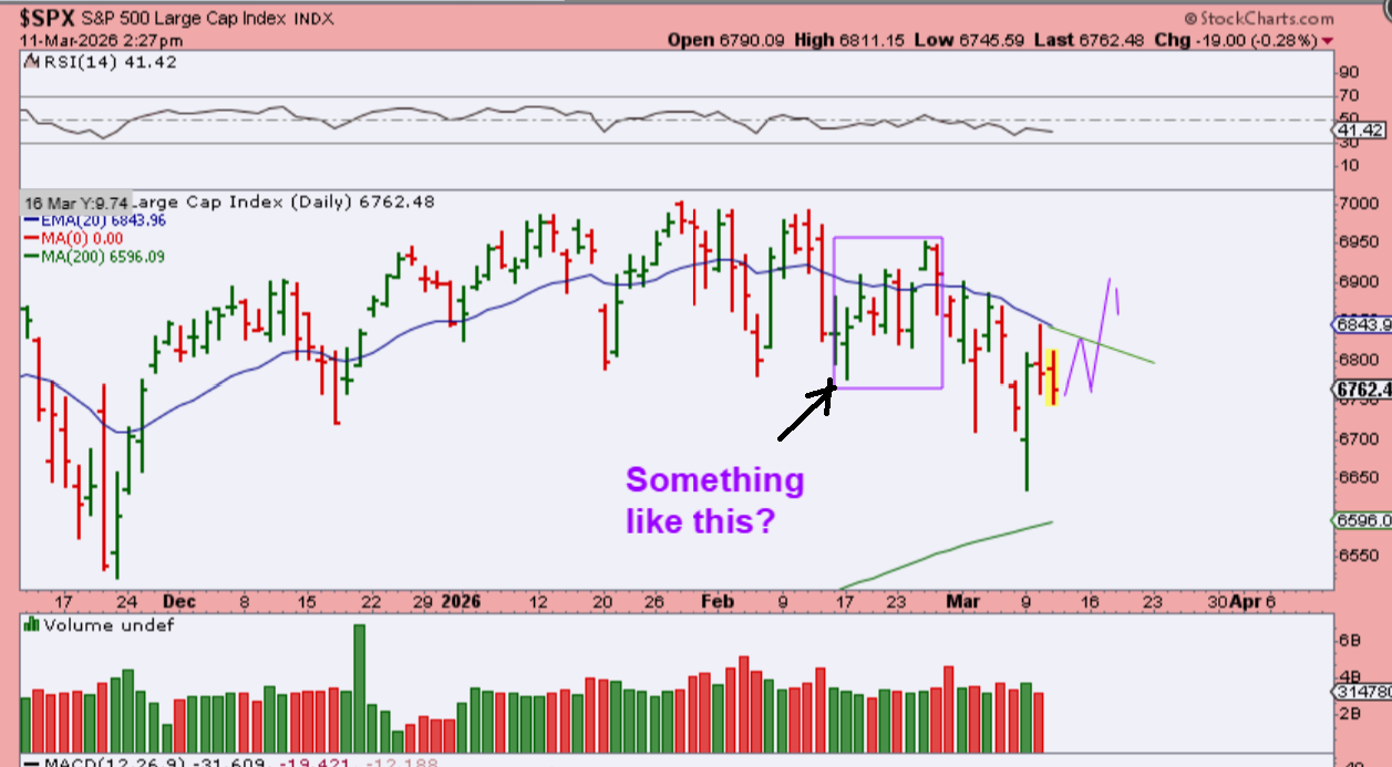 SPX – I drew this to show how that might look. It could be similar to what we saw through Februarys chop.