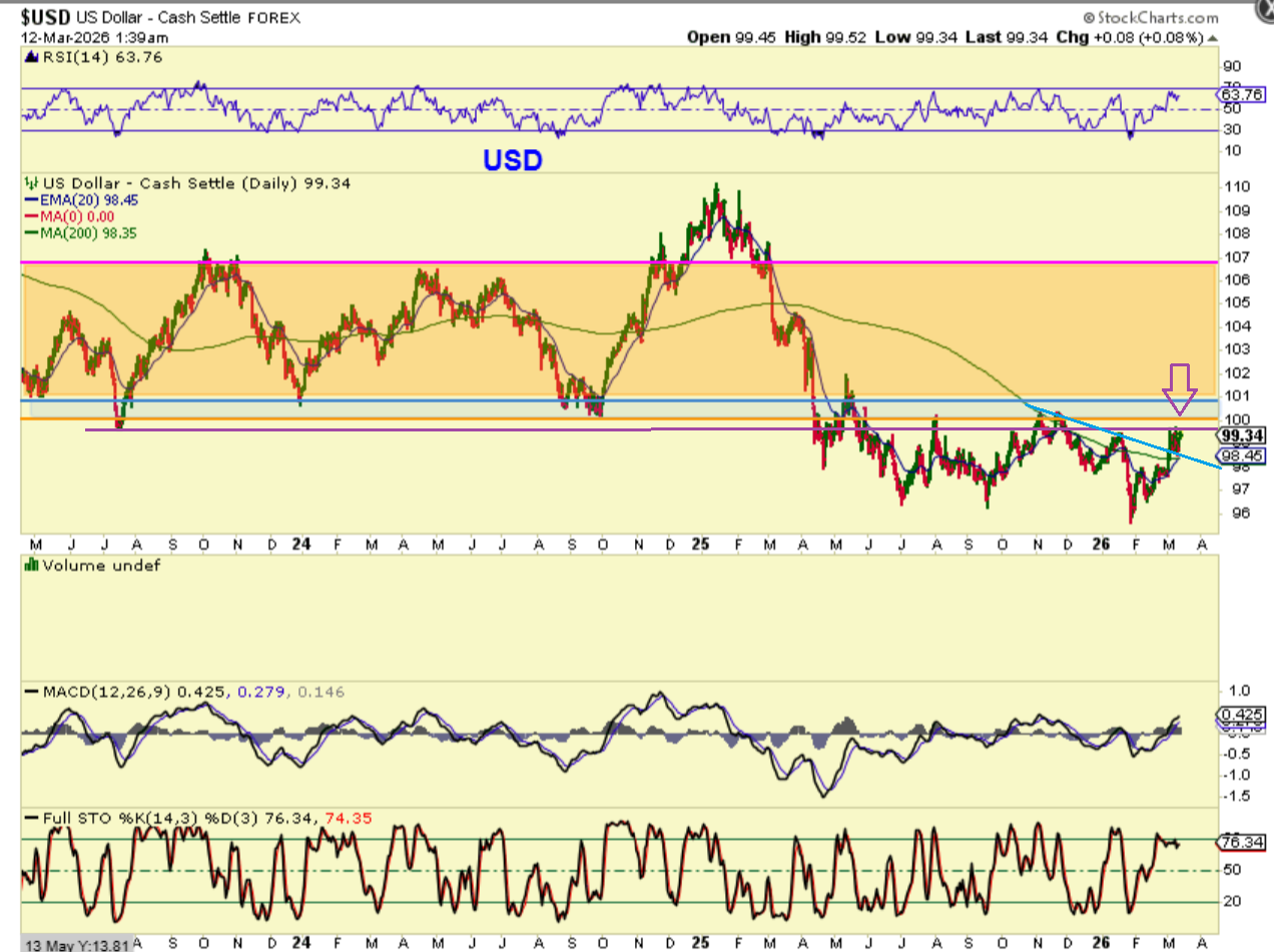 THE USD is churning sideways (as seen above) is at a resistance area. We’ll see if it can overcome resistance over time.