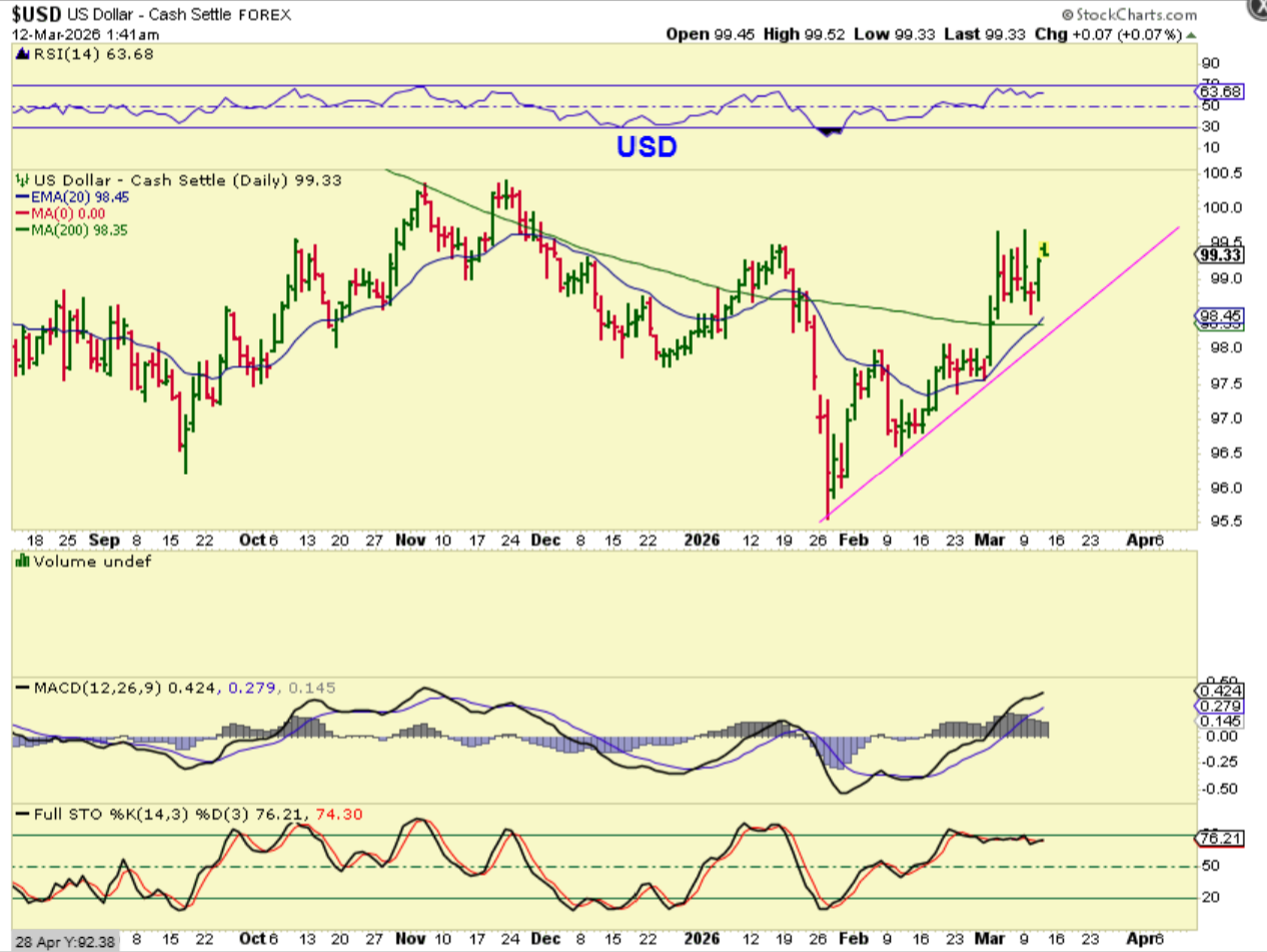 THE USD has been churning sideways and this was expected because of resistance that is overhead and was pointed out on the big picture chart. I’ll show you an update of that on the next chart.