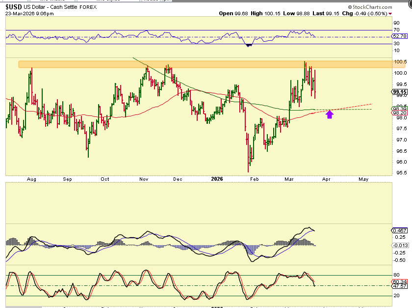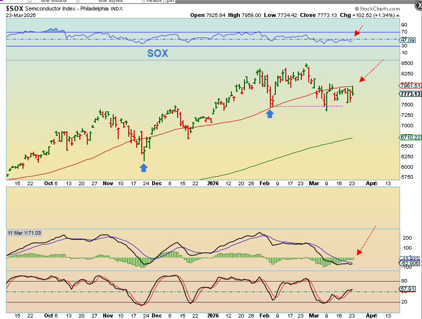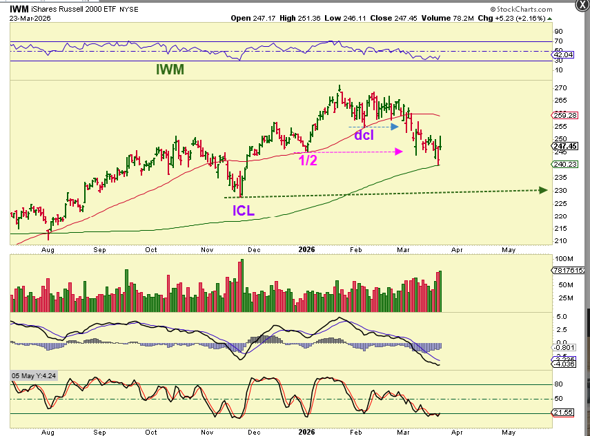 With our recent set up, we were expecting a possible bounce for roughly 7 days or so, and it would become a L.T. bounce and then it should roll over. Guess what? Coincidentally, Trump said that he was not going to bomb Iran Energy plants for the next 5 days as the Iranians talks have turned positive. Iran says that these talks did not happen, so in my opinion, we may only have a 5 day bounce and then if the U.S. or Israel begins bombing Irans Energy Plants, the selling could resume. We want to remain aware of that possibility if you are trading. Enjoy your Tuesday markets.
