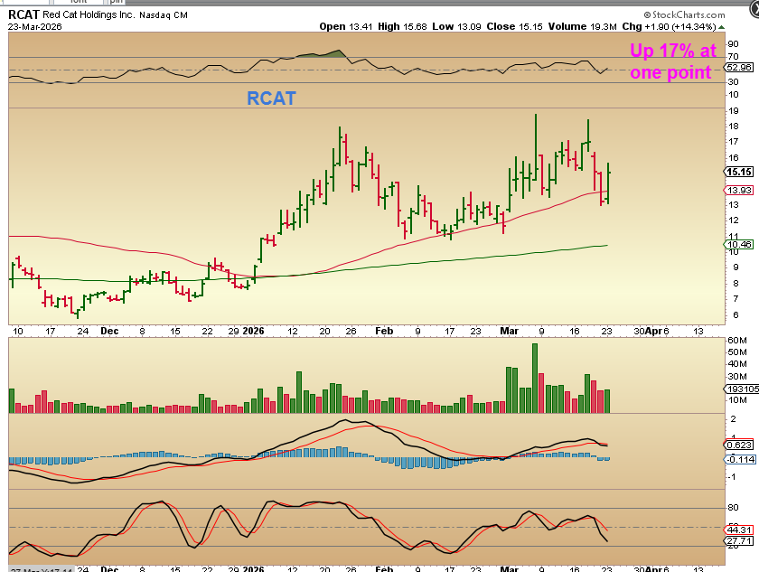 RCAT also held up well around the 50sma, and was up 14% at the close on Monday.