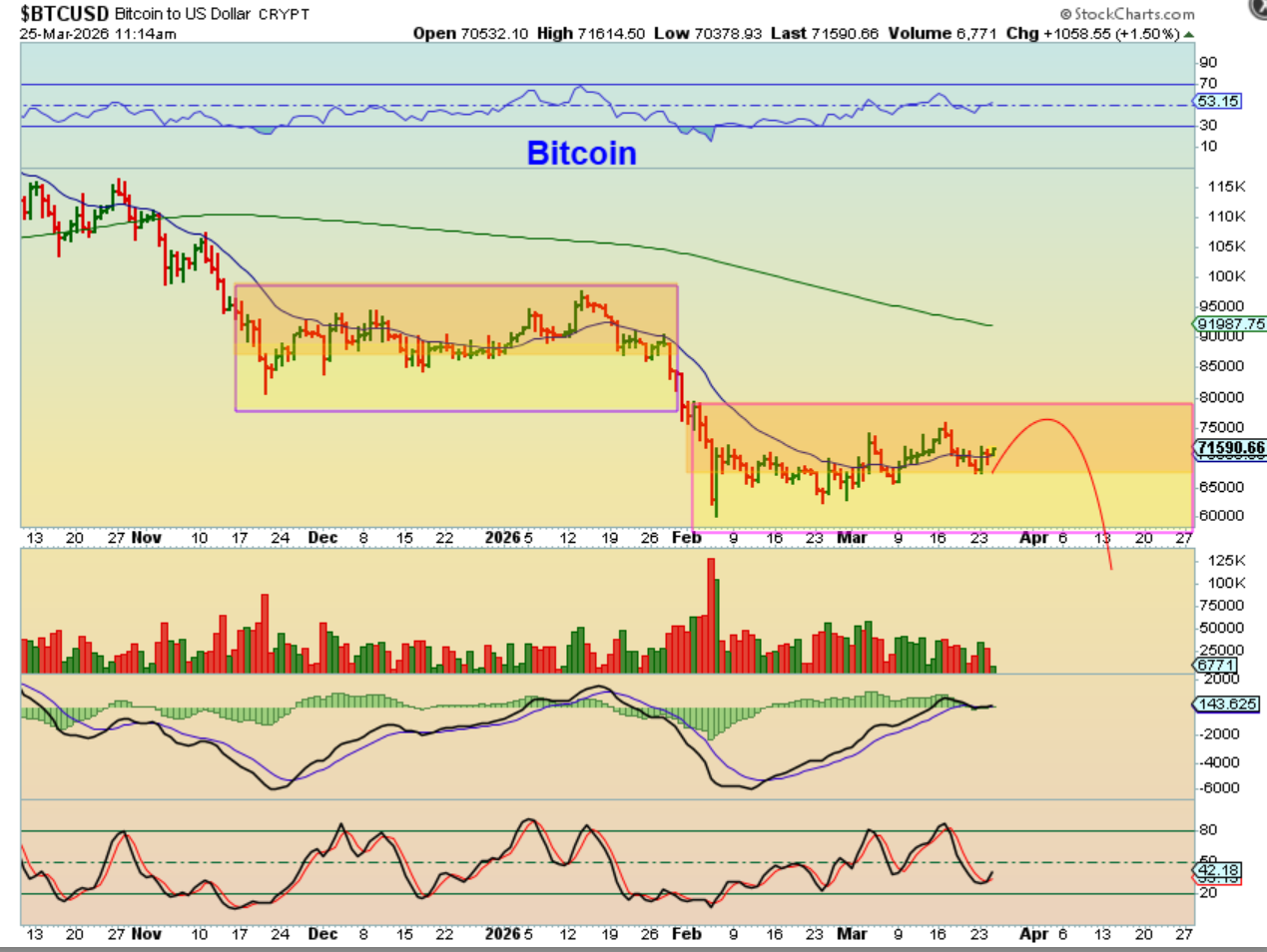 BITCOIN is churning along sideways, and time is getting late now. I have been mentioning for weeks that I think that Bitcoin will bounce and consolidate similar to the Nov to Jan churn, but then sell off again when the general markets sell off too. I have also mentioned that we should get a GREAT buying opportunity in 2026 for the Crypto sector, and some stocks are holding up better than others.