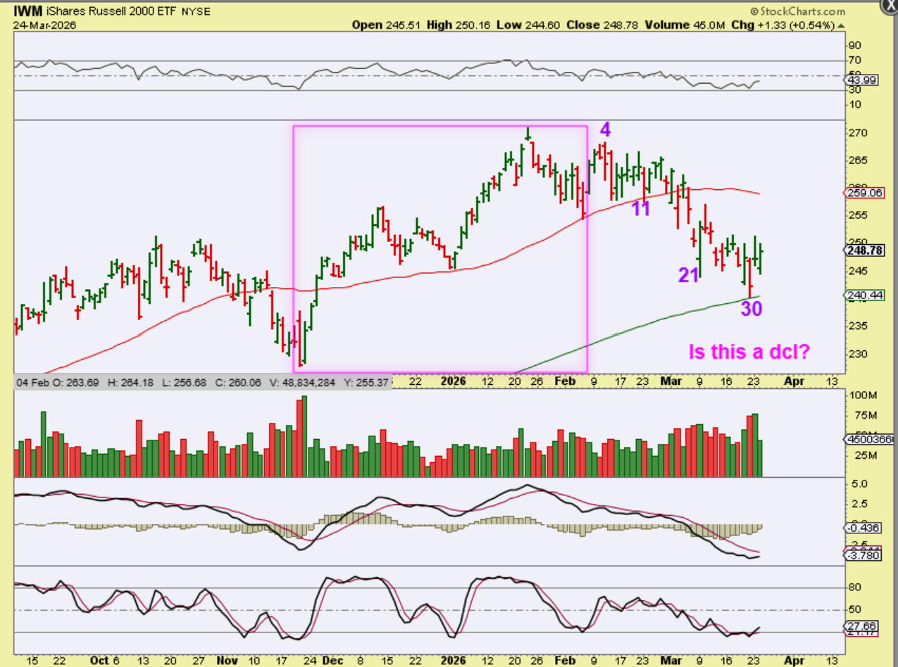 I discussed that GOLD was on day 35, and that is time for a dcl. I also discussed that it broke down below our prior Feb low, and that usually will NOT happen in a first daily cycle out of an ICL. THAT MEANS…that this might now become a final daily cycle, not a first daily cycle.