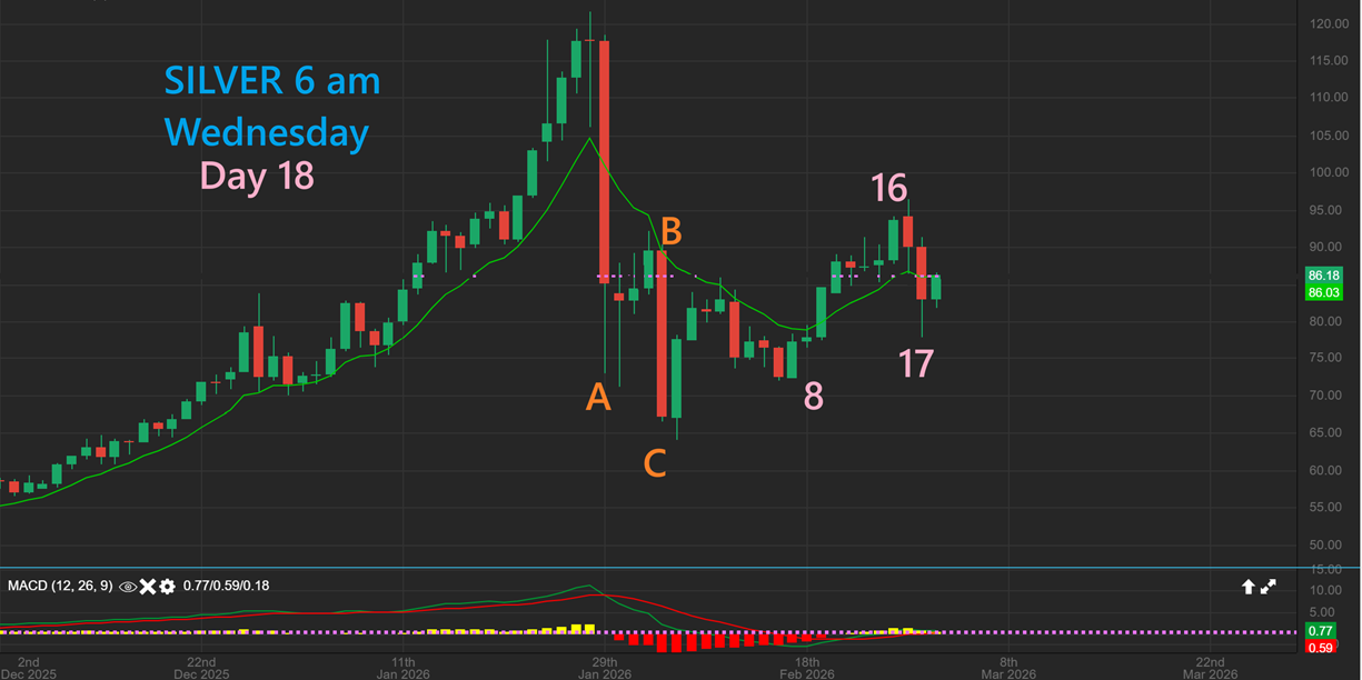 THIS IS A LIVE SHOT OF SILVER: You can see what I mean by Gold moving $100 and Silver moving $4 looking normal. The low yesterday was under $78 and rice is now $86, so that is about an $8 move off of the lows, but this is only day 18 today, so silver should bounce and drop again.